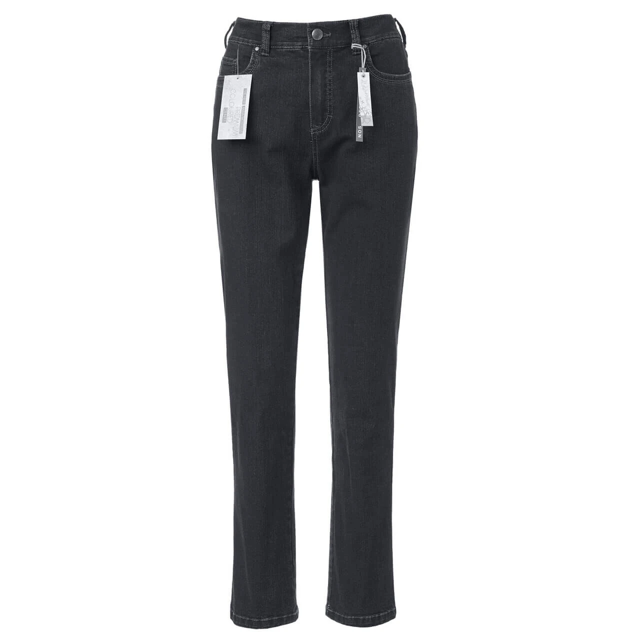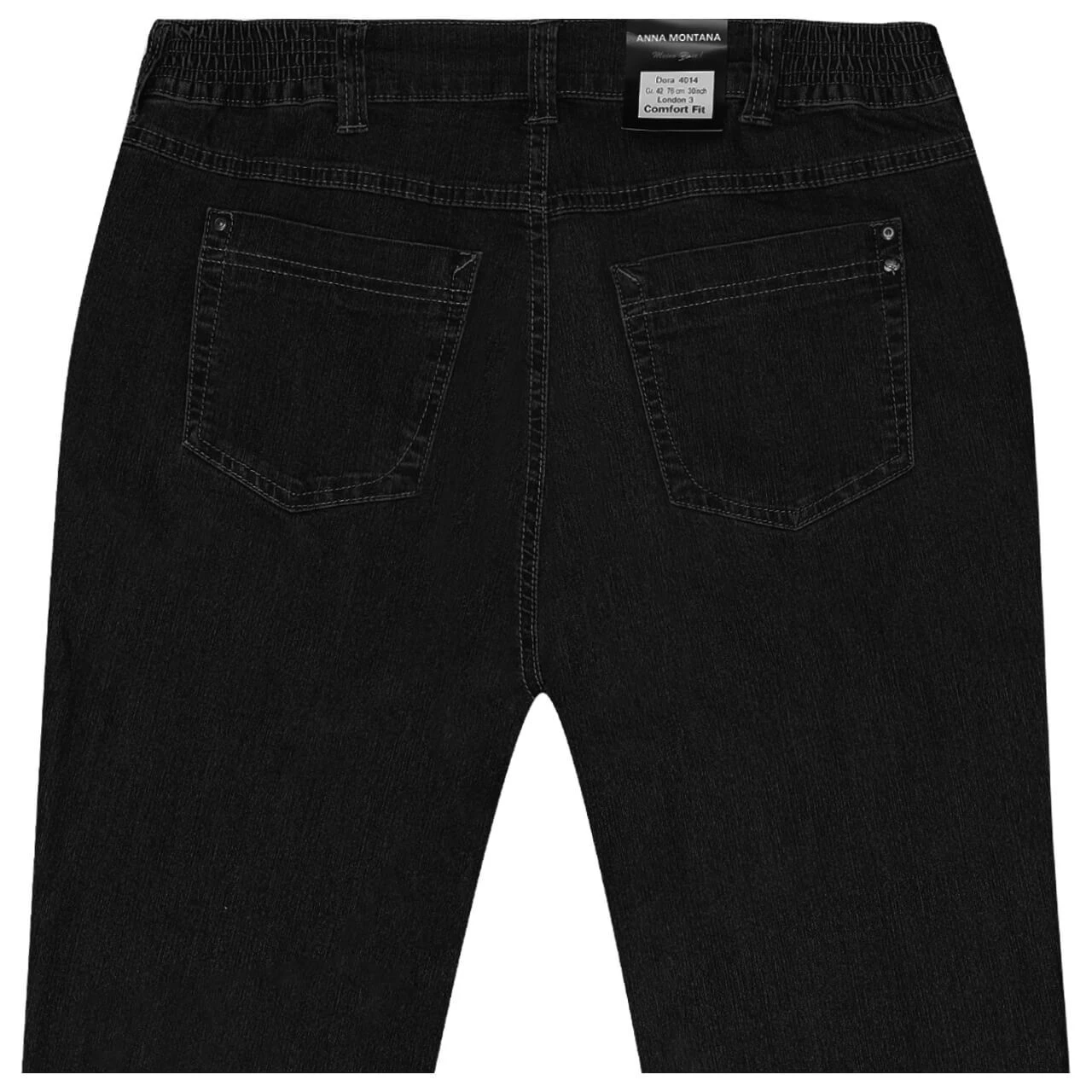 Die Anna Montana Dora hat im Bund für die besondere Bequemlichkeit in den Jeansstoff eingearbeitete Gummizüge. Ein weiterer Pluspunkt: Die komplett schwarze Damenjeans wirkt dank ihrer Farbe kaschierend.