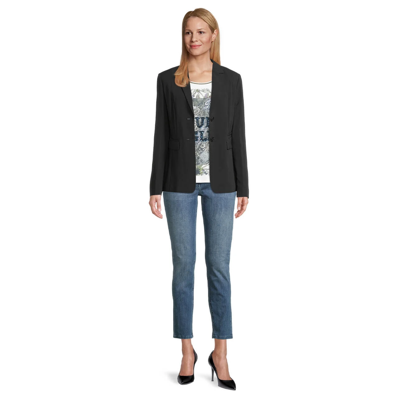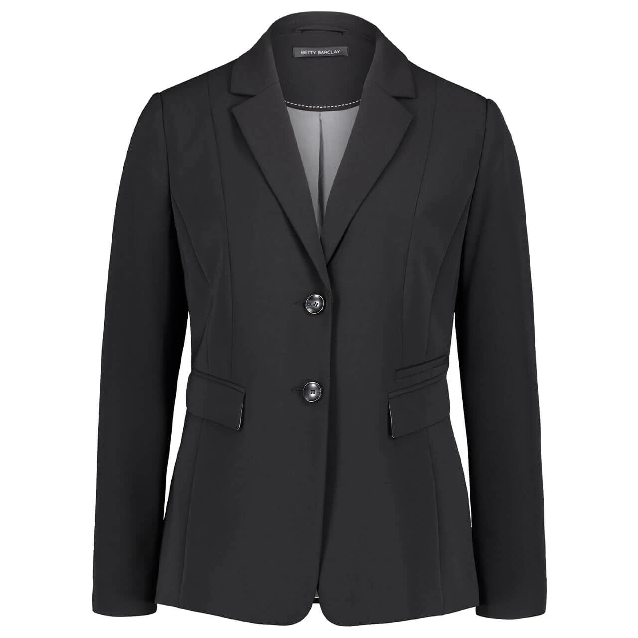 Der elegante Business Blazer von Betty Barclay begeistert mit einem Reverskragen, einer angedeuten Knopfleiste an den Ärmelenden und zwei Hüfttaschen. Zeigen Sie mit dieser Damenjacke Ihre feminine Seite!