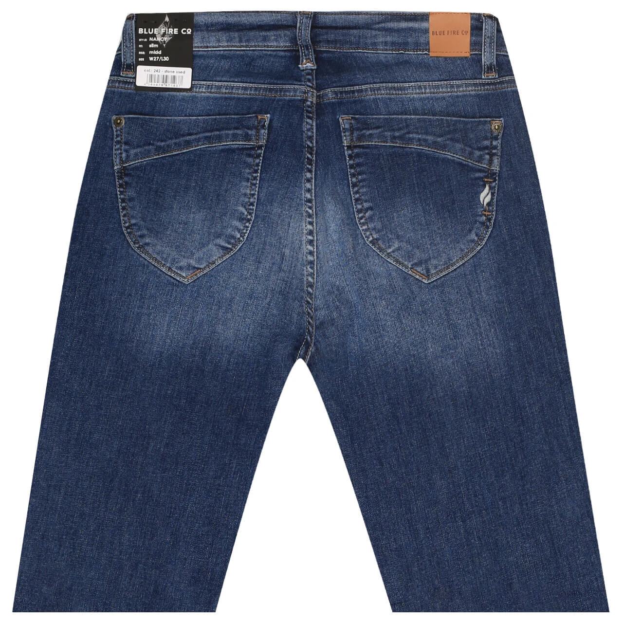 Dank Lycra® hat die Blue Fire Nancy eine langlebige Form, ist aber gleichzeitig auch elastisch. Zweifarbige Nähte und ein brauner Patch am Hosenbund sorgen für charakteristische Merkmale bei der Damenjeans.