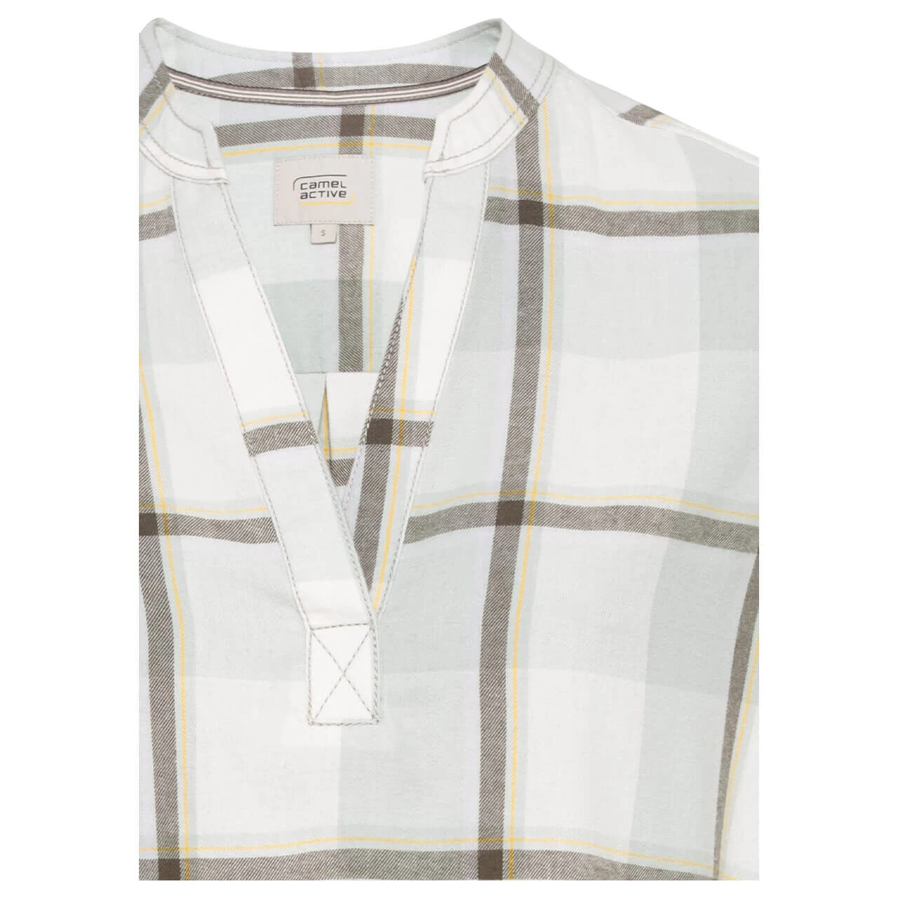 Schlicht und leicht zeigt sich die Camel active Damen Bluse: Mit ihren sanften Pastellfarben lässt sich das Oberteil angenehm kombinieren und zählt somit zu den Basics.