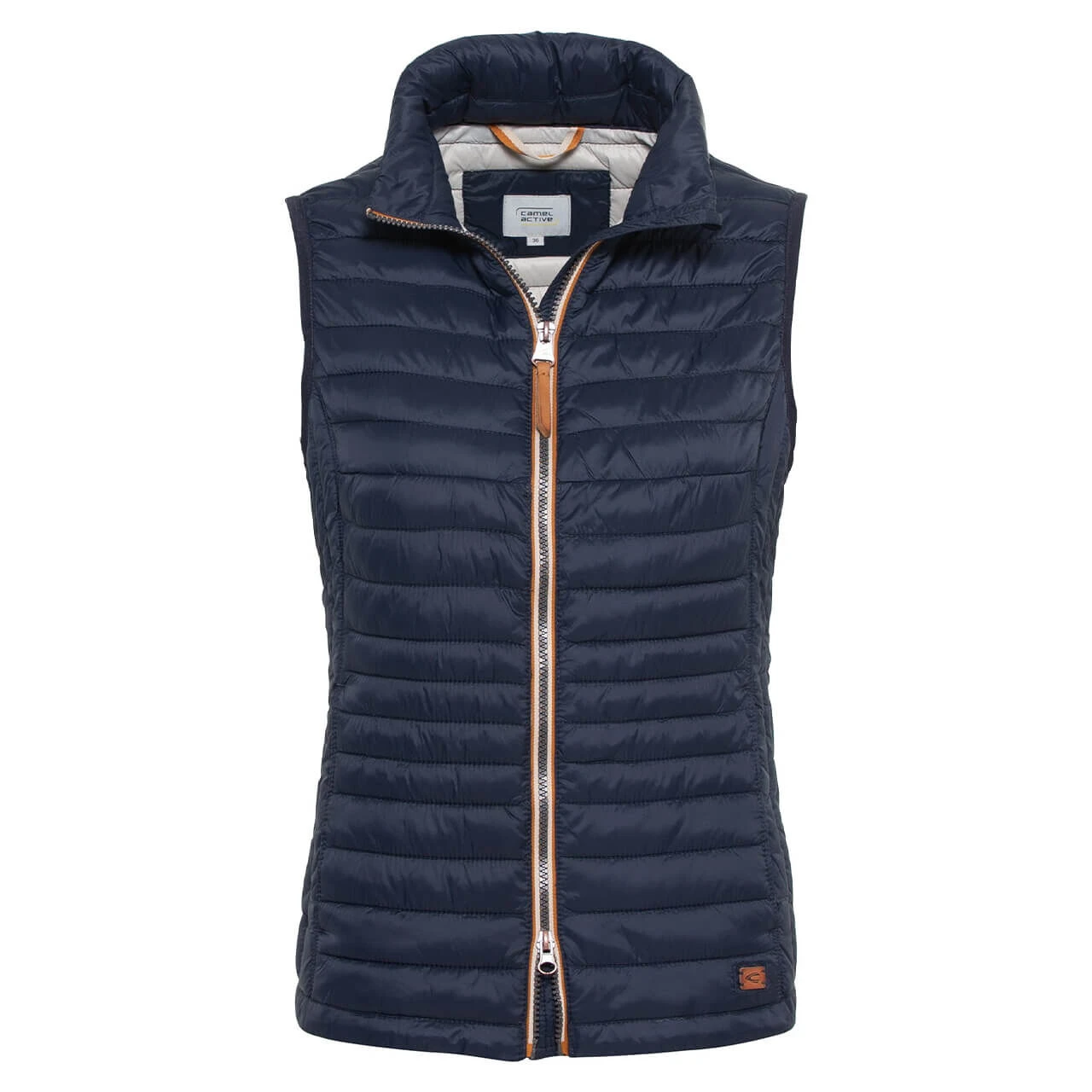 Holen Sie sich mit der Camel active Damenweste einen warmen Rücken! Das Modell mit Stehkragen und Zwei-Wege-Reißverschluss inklusive Kinnschutz wärmt Sie auf leichte Weise. Zwei Hüfttaschen, deren Öffnungen in der Steppung verschwinden, bieten auch Ihren Händen Schutz.