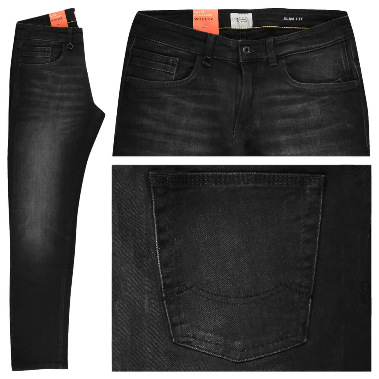 Auf dem Schwarz der Camel active Madison wird die Waschung prominent! Eingearbeitete Sitzfalten und der Zwei-Wege-Stretch machen die Herrenjeans zu einem optimalen Begleiter.