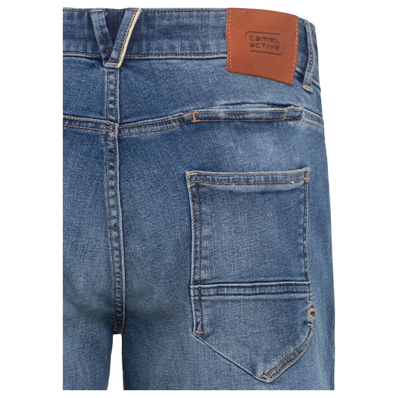 Wie praktisch: Die Camel active Woodstock hat kein klassisches 5-Pocket-Design, sondern bringt eine sechste Tasche als Aufbewahrungsort für Ihr Handy ins Spiel. Ansonsten mag es die Herrenjeans traditionell: Der robuste Denim hat leichte Verwaschungen und kombiniert zur blauen Färbung braune Nähte sowie einen Echtlederpatch.