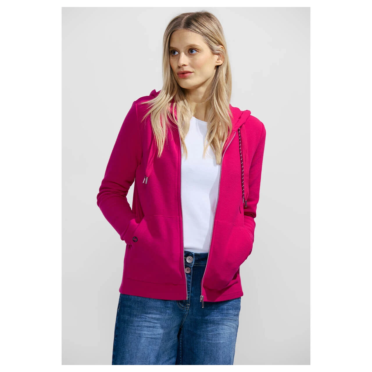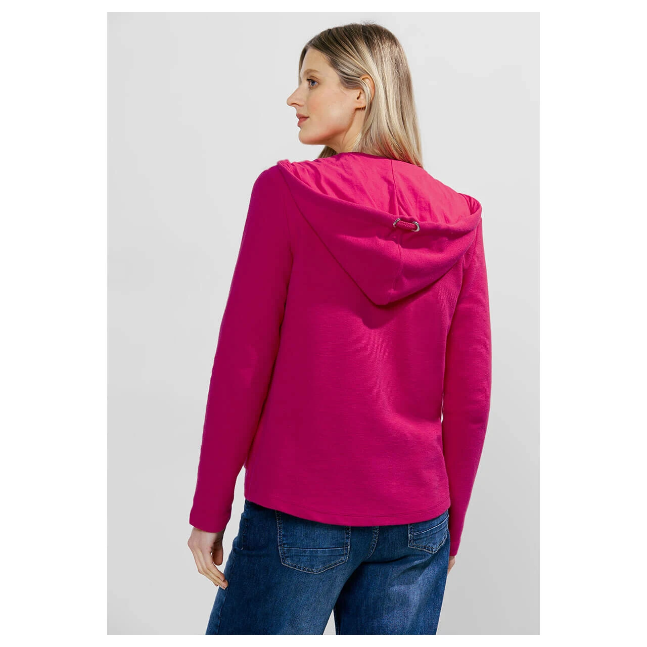 Die Hoodie Damen Shirtjacke von Cecil mit Reißverschluss ist ein bequemes und vielseitiges Kleidungsstück. Sie verfügt über eine Kapuze mit Tunnelzug und praktische Kängurutaschen. Die feine Ottoman Streifen-Struktur verleiht ihr einen ansprechenden Look, während der Baumwollmix für ein angenehmes Tragegefühl sorgt.