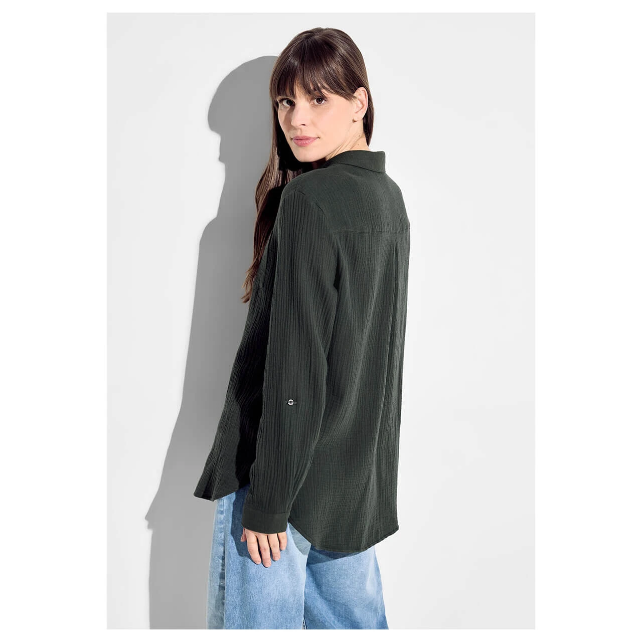 Die Musselin Damen Bluse von Cecil mit einer Turn-Up Langarm-Funktion ermöglicht es, die Ärmel nach Belieben hochzukrempeln. Das weich fließende und atmungsaktive Material sorgt für hohen Tragekomfort und macht diese Bluse zu einem vielseitigen Begleiter für verschiedene Anlässe.