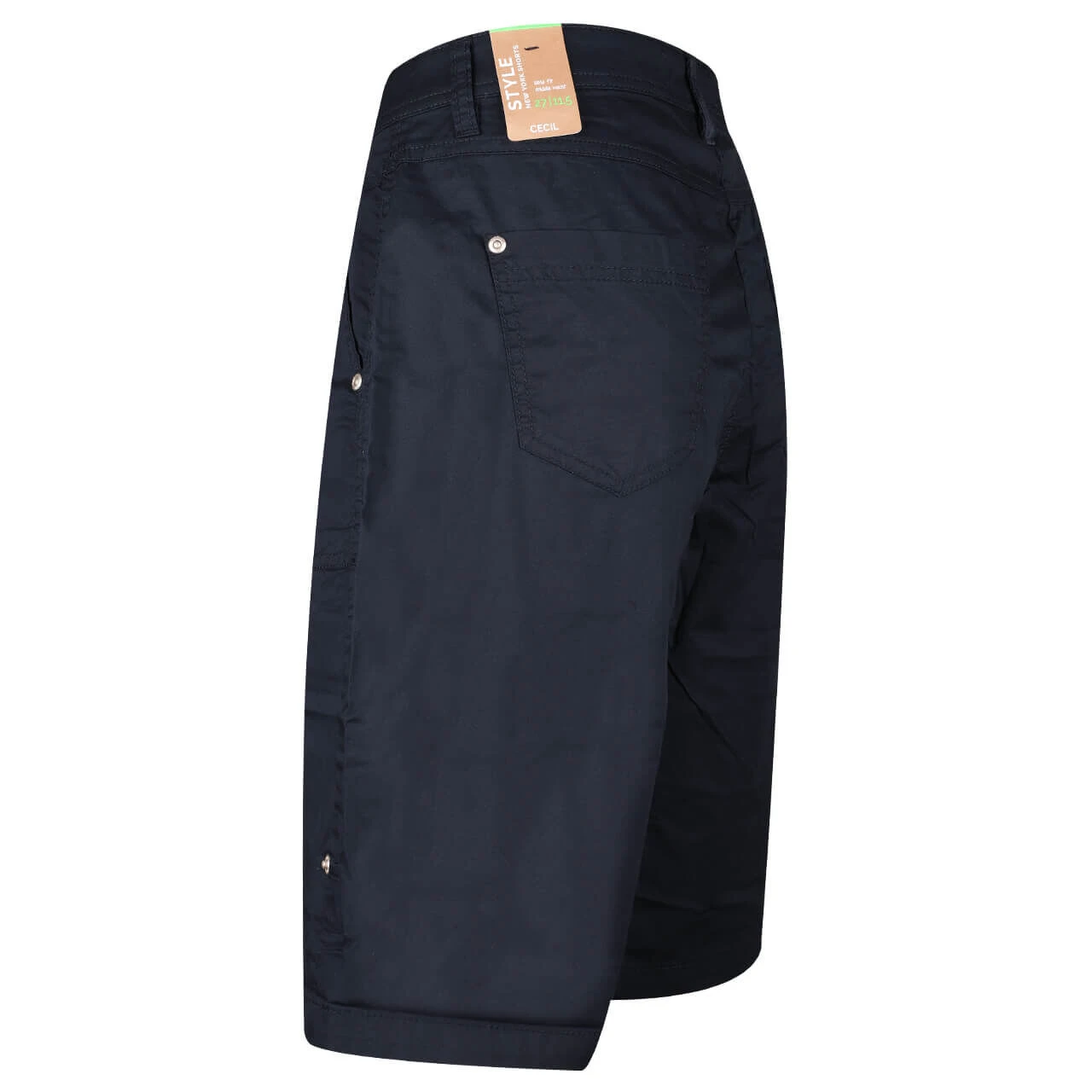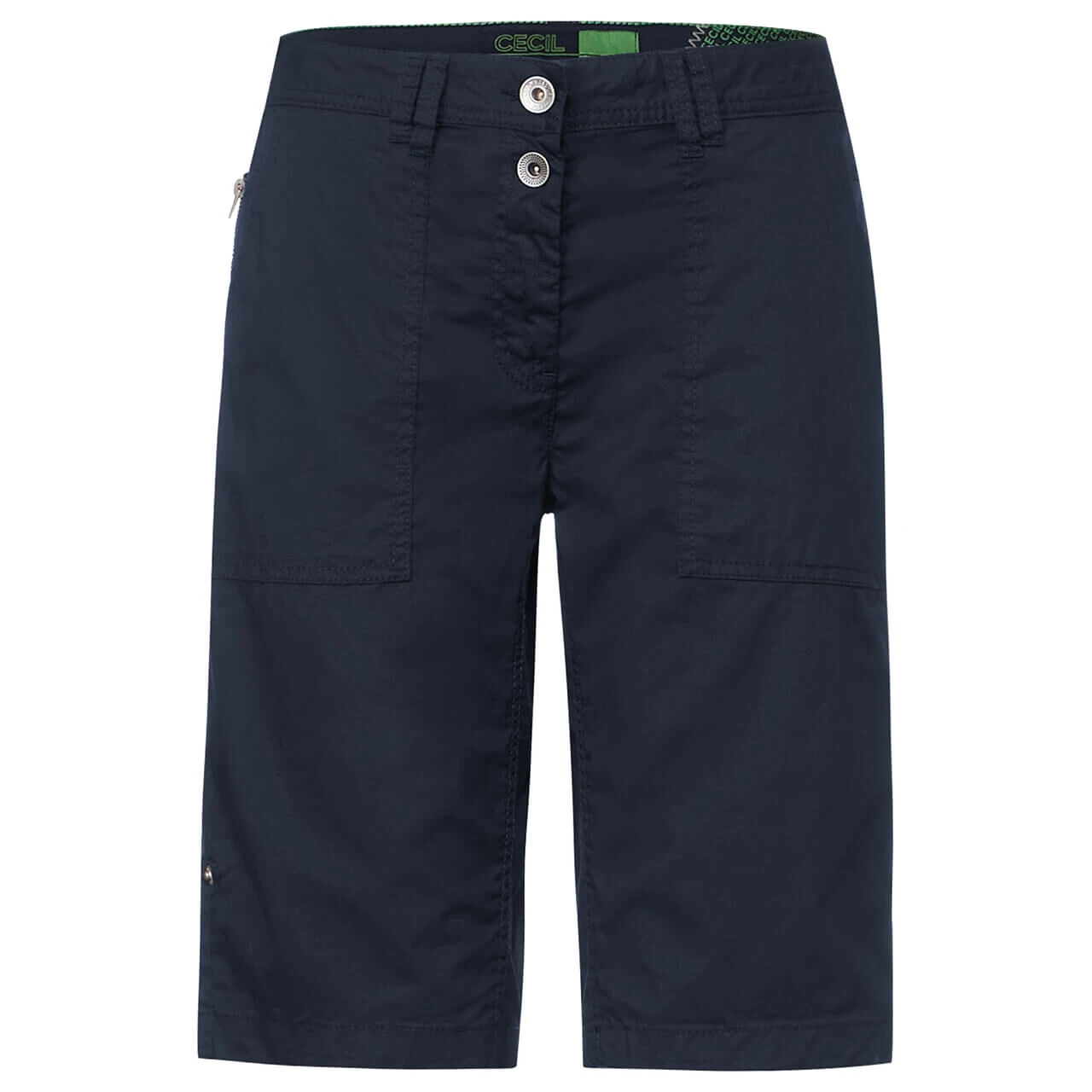 Wenn Sie die Cecil Damenhose New York krempeln, können Sie den Umschlag mit einem Turn-Up-Riegel befestigen – die Shorts sehen gleich viel sportiver aus! Mit einem Doppelknopf und schrägen Fronttaschen ist das Modell detaillreich ausgestattet.