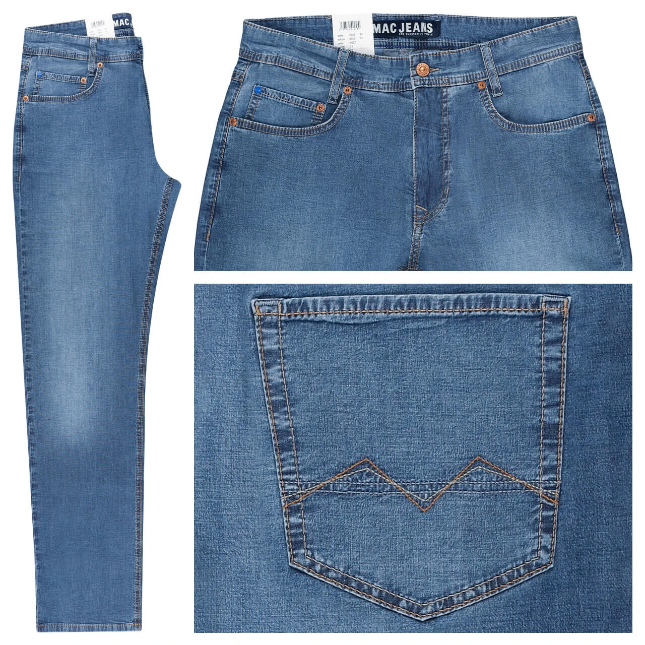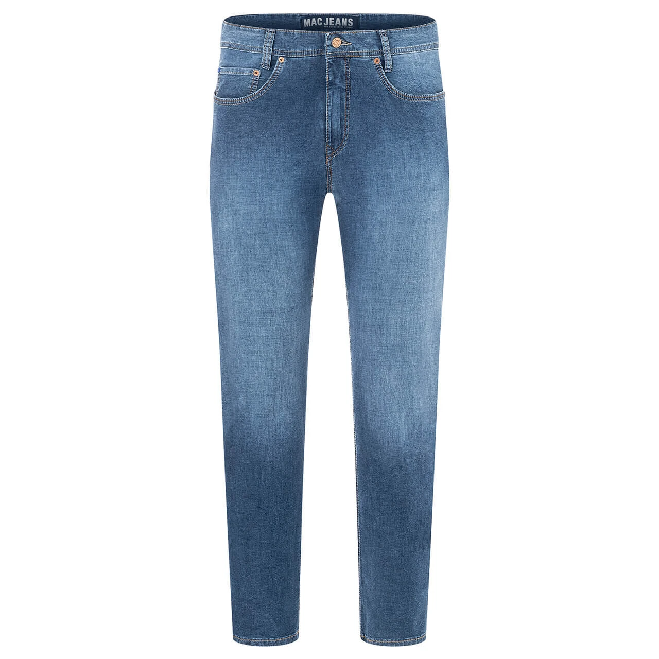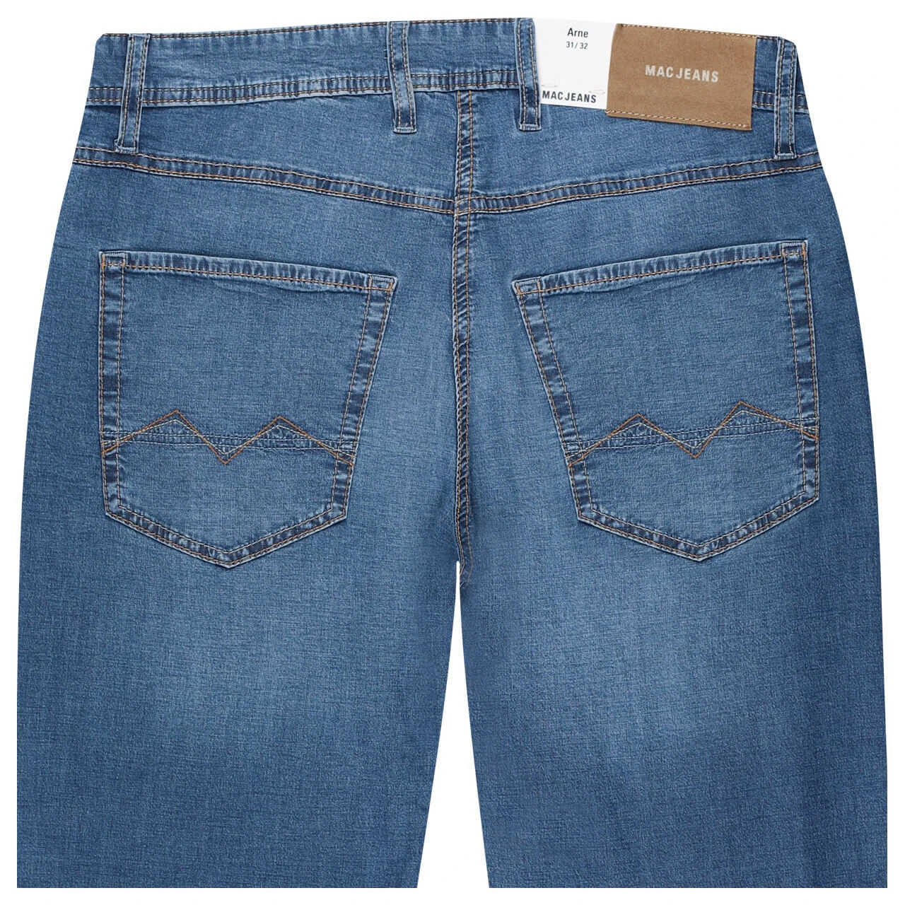 Super leicht – so lässt sich die MAC Arne am besten beschreiben. Das sommerliche Material wird Sie bei Hitze vor dem Schwitzen bewahren. Der Knopf und die Nieten stechen mit ihrem Kupferton kräftig bei der Herrenjeans hervor.
