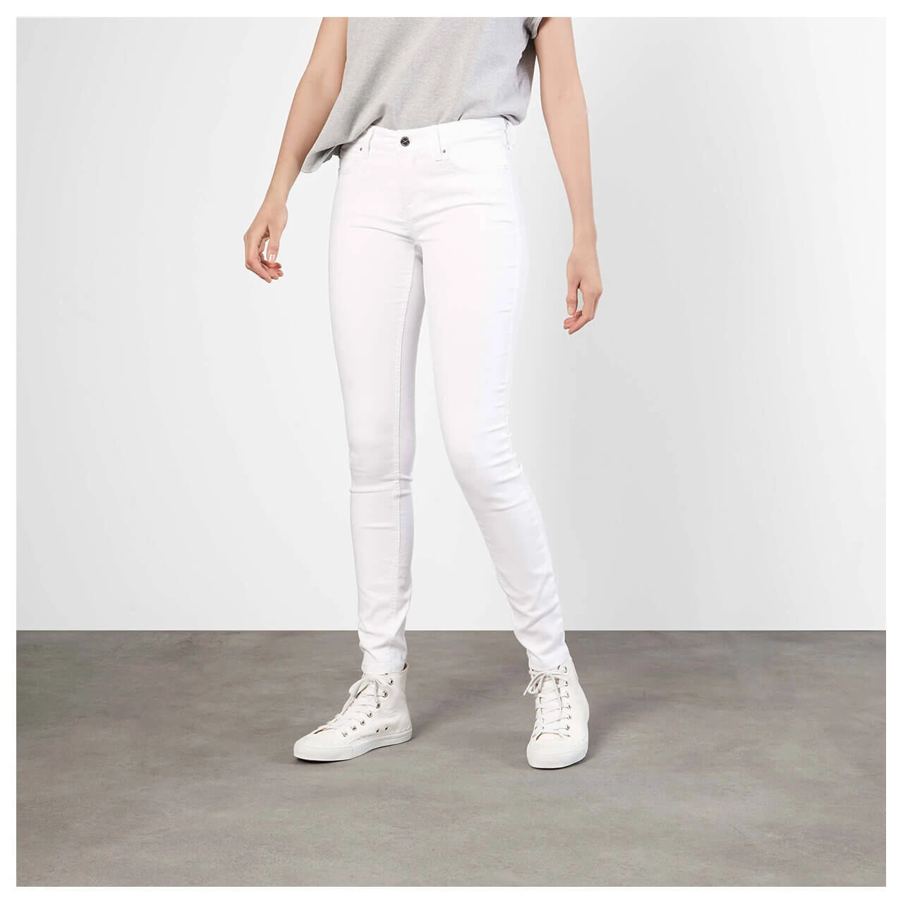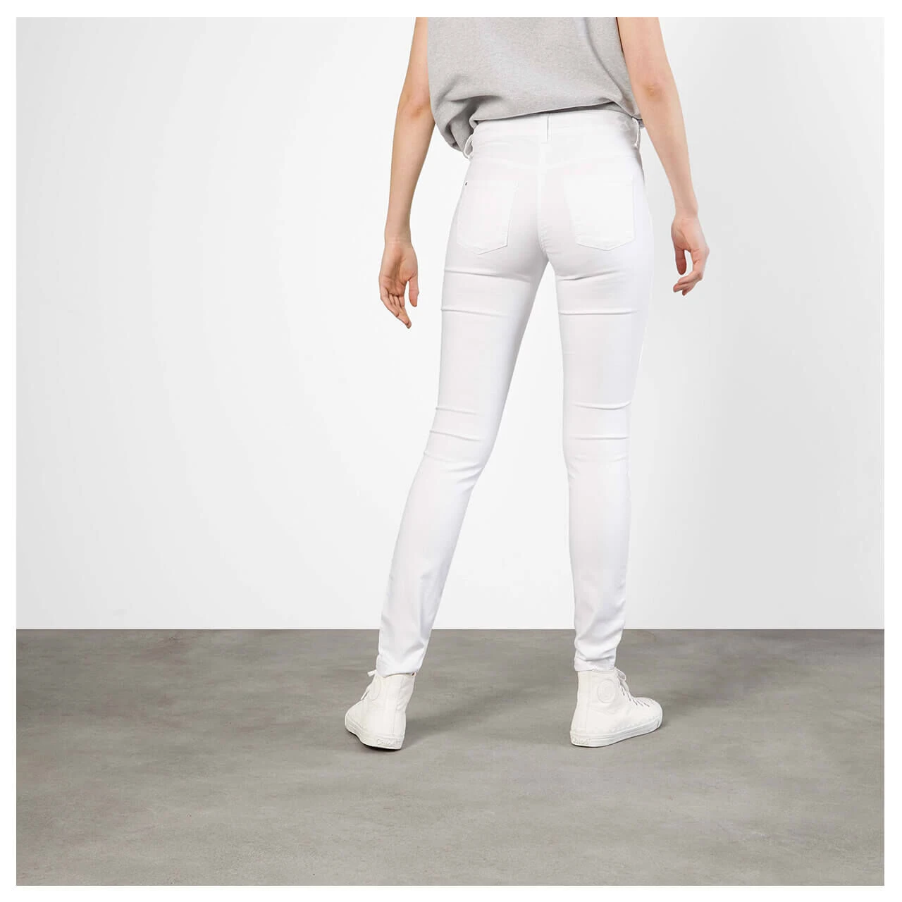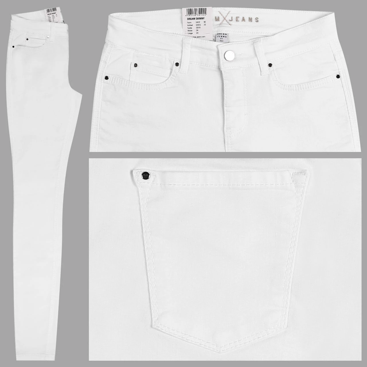 Form Dream Skinny ist die neueste Passform in der MAC-Produktpalette: Die Schwester-Passform ist im Vergleich zur MAC Dream noch ein wenig schmaler im Bein. Die Damenjeans verfügt über einen sehr hohen Stretchanteil und ist somit sehr elastisch. Sie passt deswegen bis zu zwei Konfektionsgrößen kleiner! Durch eine innovative Materialzusammensetzung passt sich diese Jeans der weiblichen Silhouette optimal an, bleibt aber trotzdem in ihrer Passform erhalten und leiert nicht aus. MAC Dream Skinny zeichnet sich außerdem durch ihren schönen weichen Griff aus. Das frische Weiß der Damenjeans passt perfekt zu jedem Outfit – auch im Job!