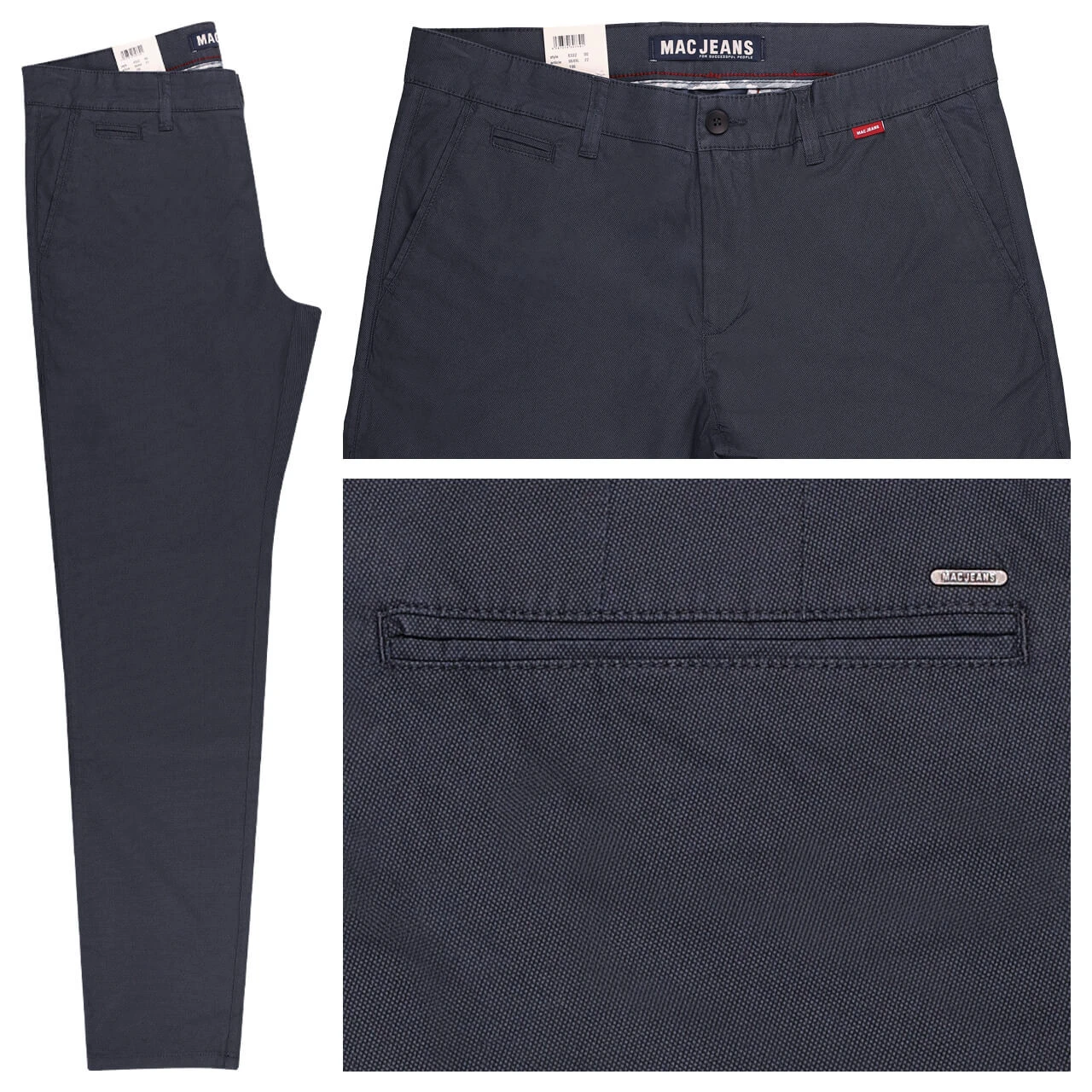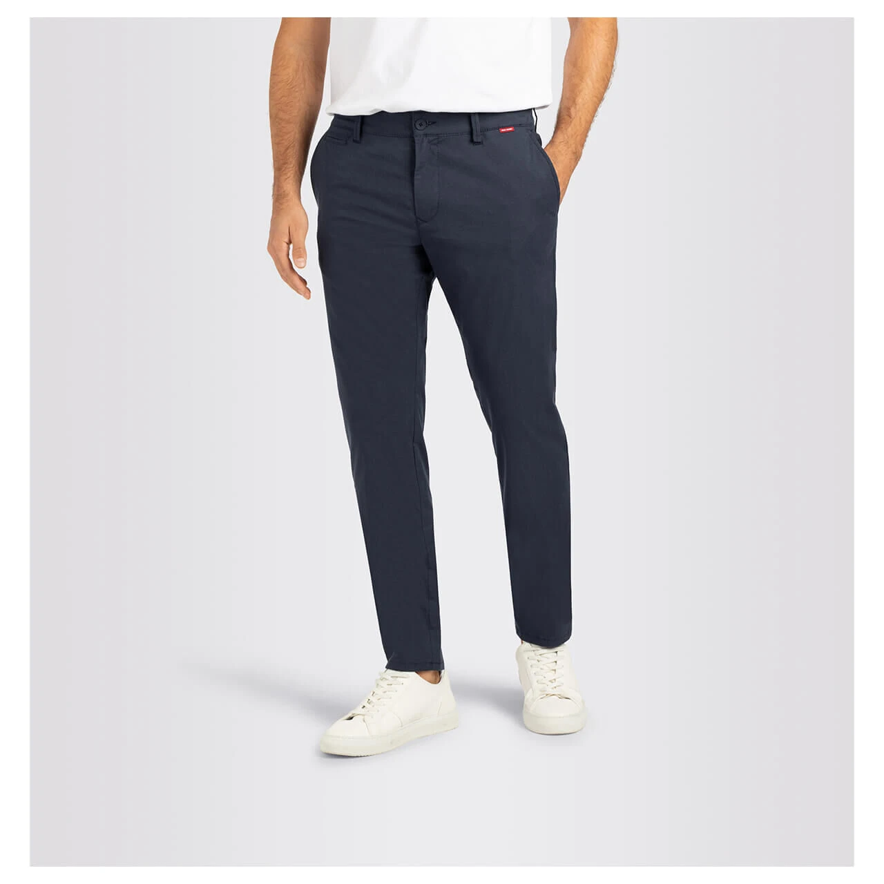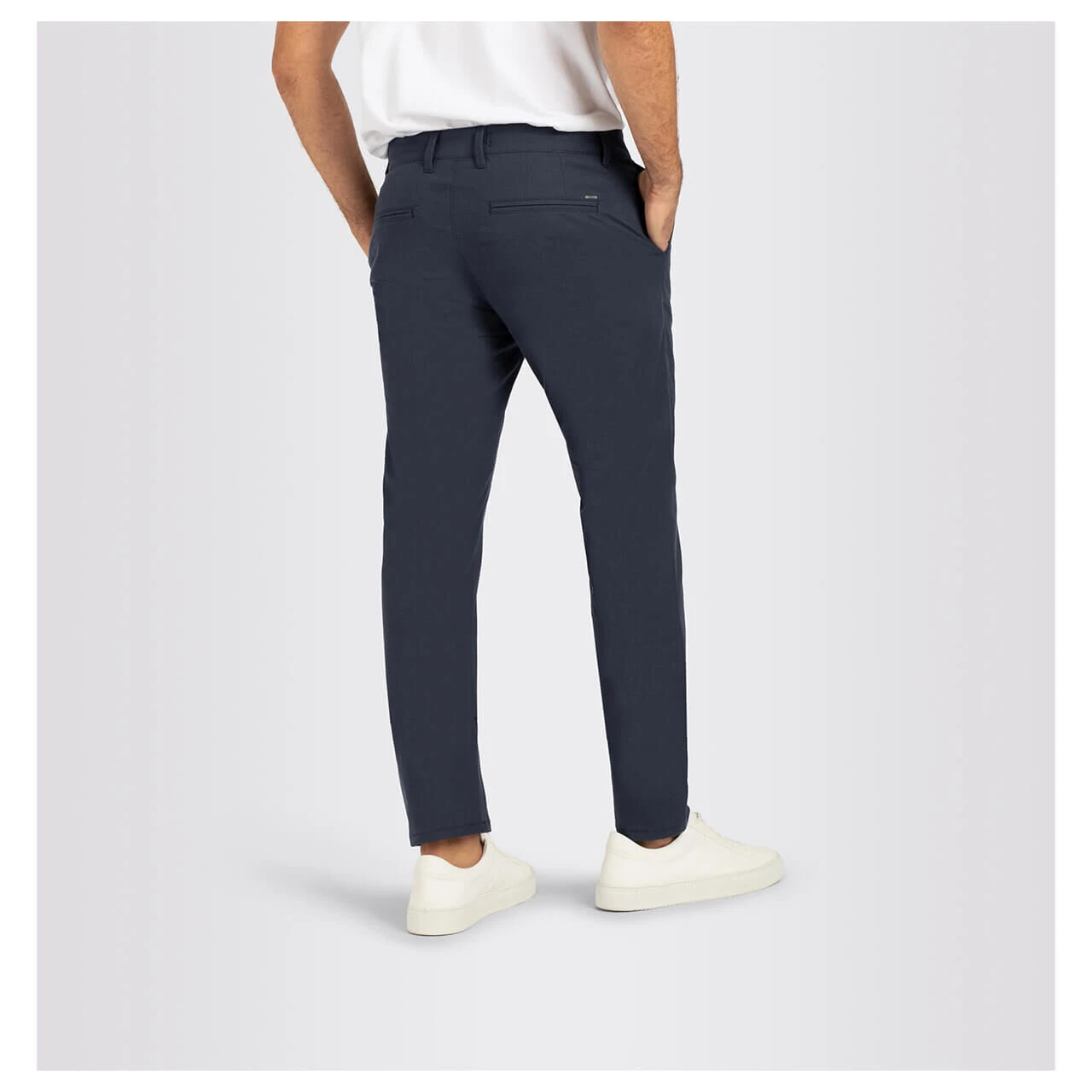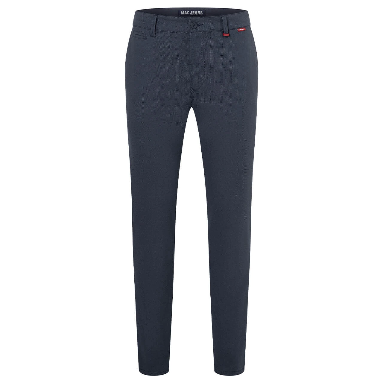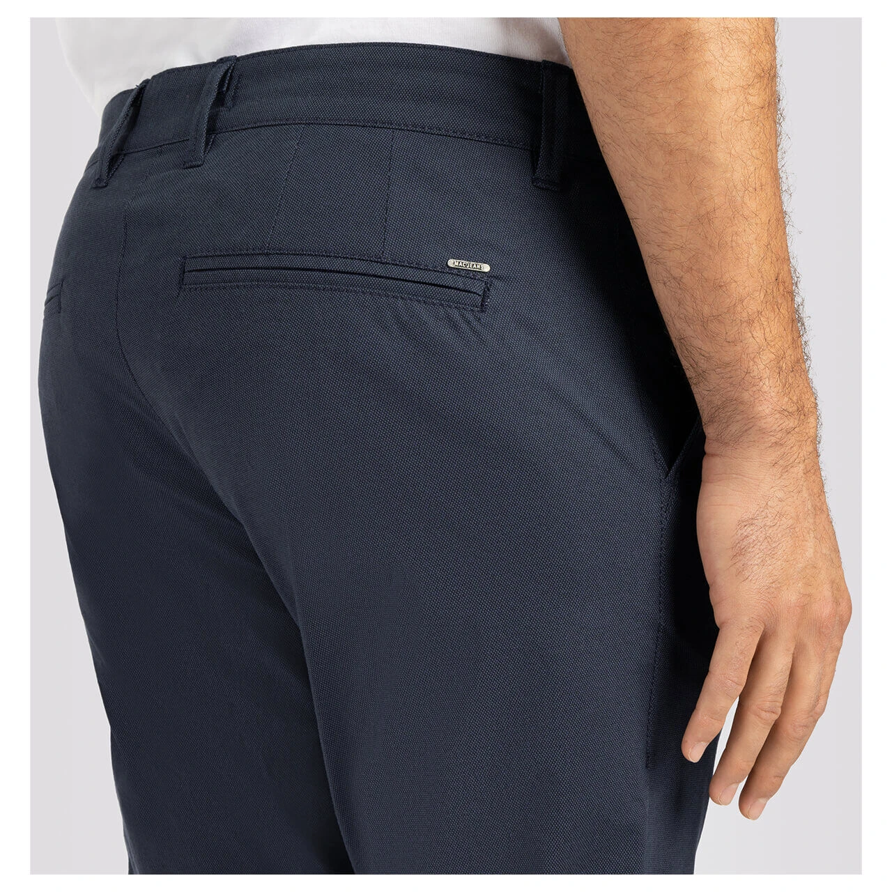 Extravagant trifft auf zeitlos! Die MAC Lennox präsentiert sich in einem dunkelblauen Farbton, der mit einem dezenten Rautenmuster versetzt ist. Durch die sehr leichte Materialqualität eignet sich die Herrenhose für jeden Anlass: Ob im Büro, in der Freizeit oder für eine Festivität – Eleganz wird hier großgeschrieben. Angedeutete Paspeltaschen auf der Rückseite komplettieren den Look der Chinohose.