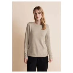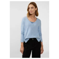 Street One Damen Pullover V-neck Sweater Light Green Melange