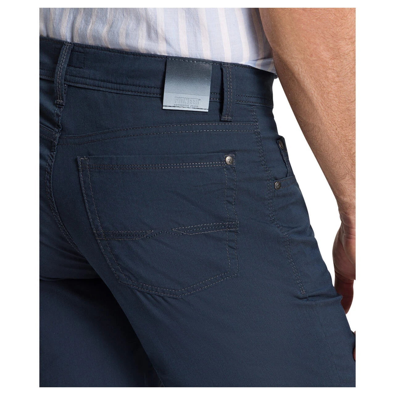 Sommerlicher geht’s kaum! Die Pioneer Jeans Finn überzeugt mit einem sehr leichten Materialmix, der für angenehme Tragestunden sorgt. Dunkelgraue Nähte ergänzen das Blau, genauso wie die gebrandeten Nieten.