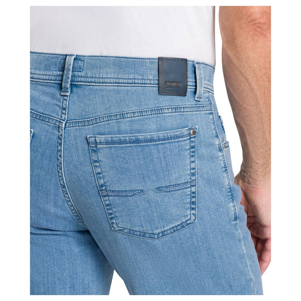 Mit dezent zweifarbigen Nähten, die sich aber wie der Denim im blauen Farbspektrum aufhalten, zeigt die Pioneer Jeans Finn ihre Liebe zum Detail. Gebrandete Nieten und ein ebenfalls blauer Patch auf der Rückseite des Bunds begleiten das Design der Bermuda.