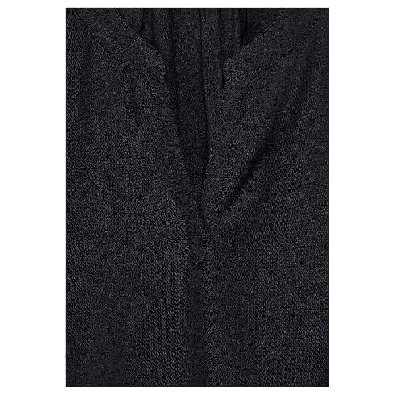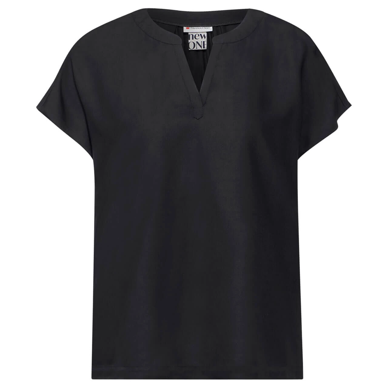 Damen Kurzarm Bluse Splitneck in Schwarz