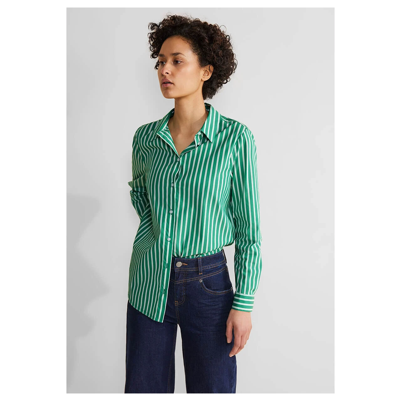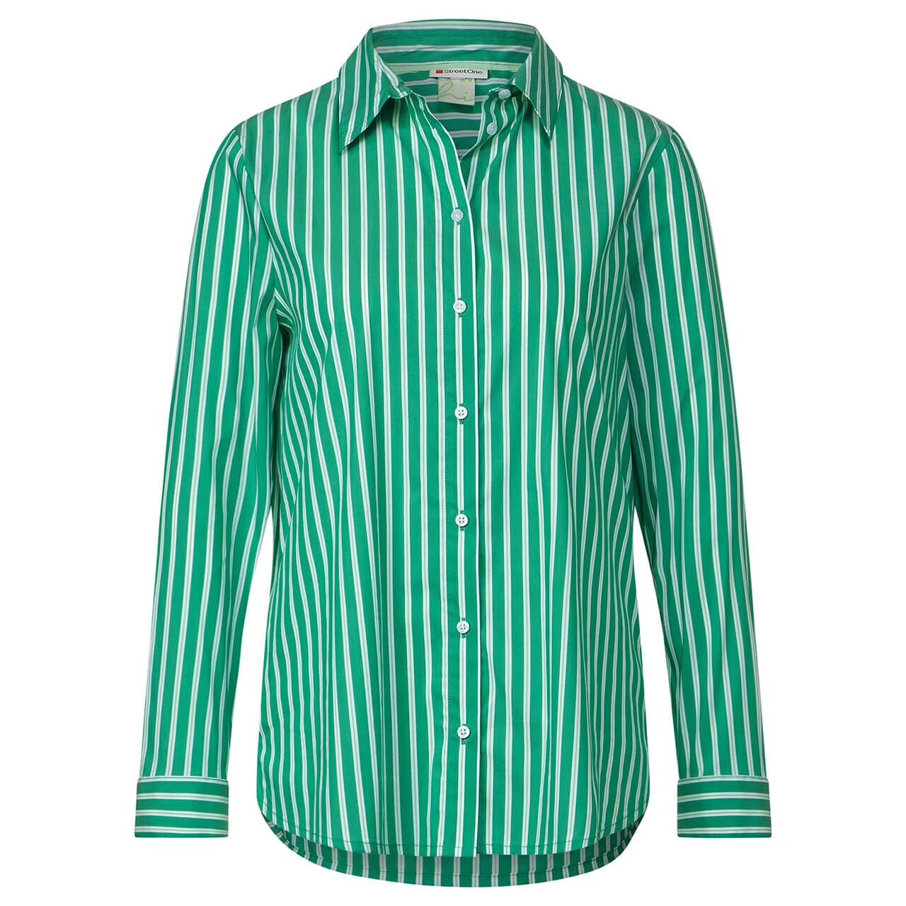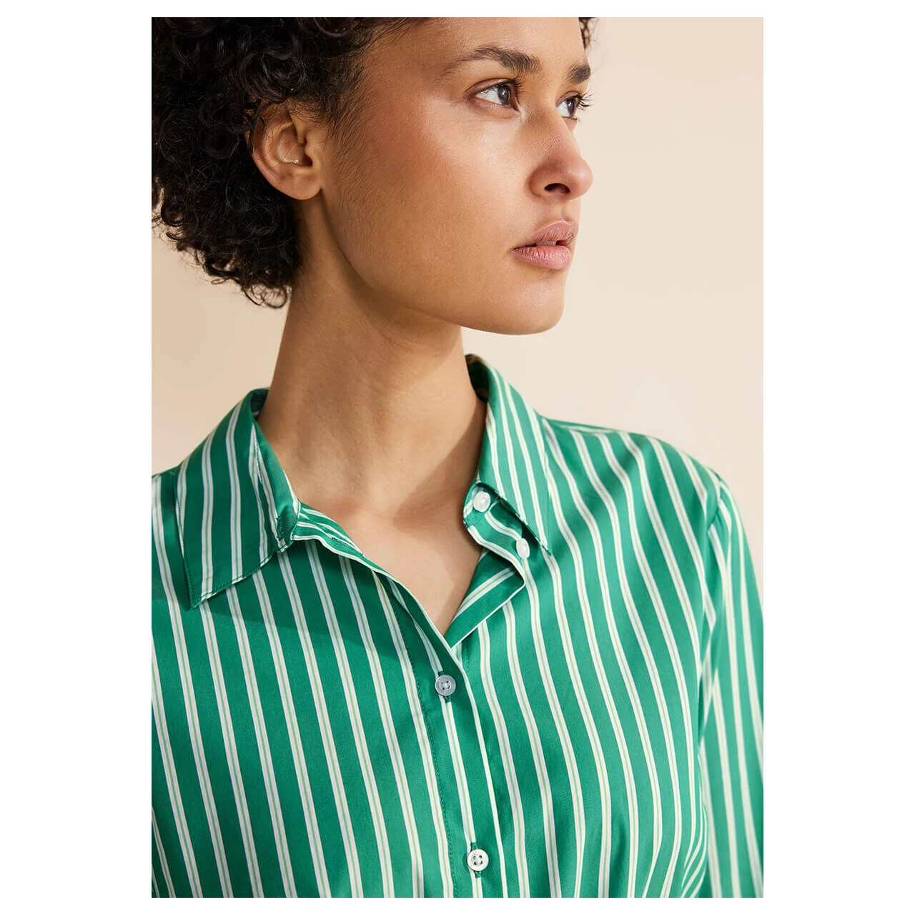 Die gestreifte Damen Bluse von Street One ist ein vielseitiges Kleidungsstück, das von Büro bis Event für einen legeren und dennoch eleganten Look sorgt. Mit Langarm, Kragen und Knopfleiste ist das Oberteil ein zeitloser Klassiker, der sich leicht kombinieren lässt und immer gut aussieht. Die abgerundete Saumgestaltung verleiht der Bluse eine besondere Note.