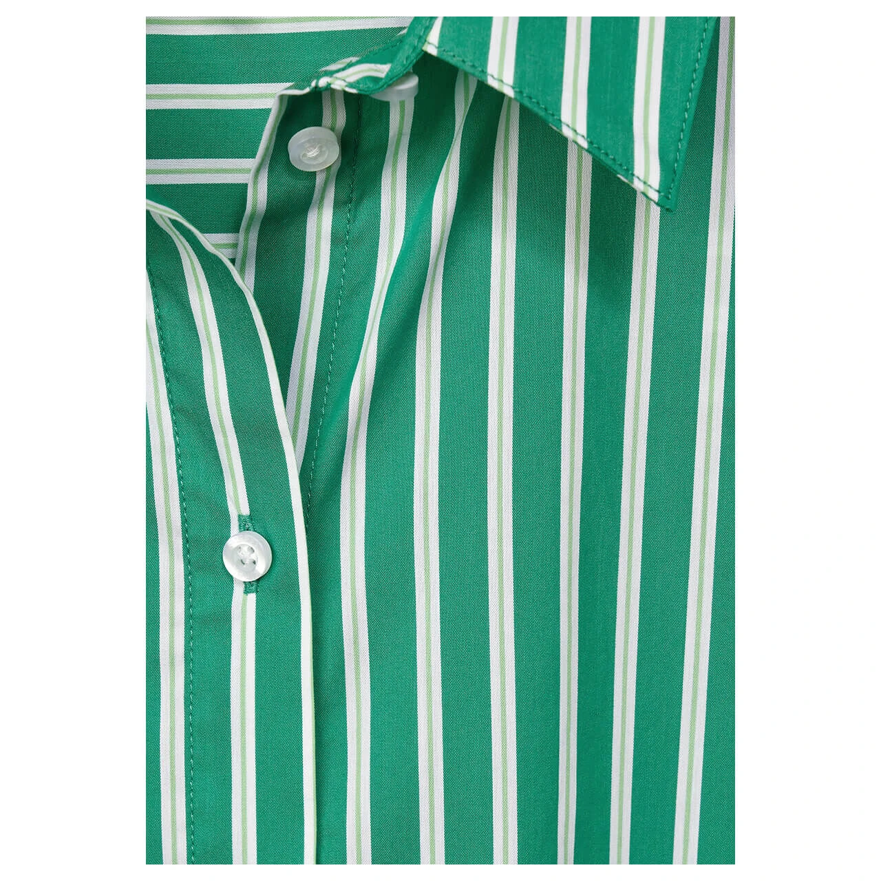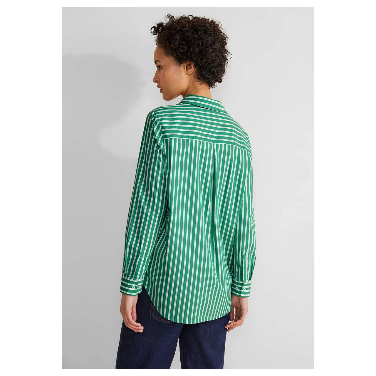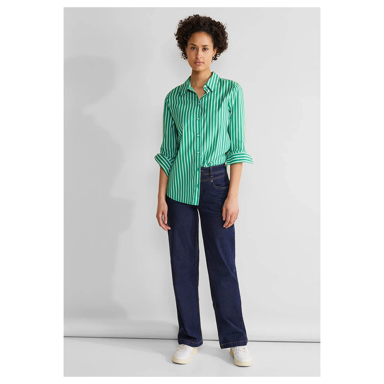Die gestreifte Damen Bluse von Street One ist ein vielseitiges Kleidungsstück, das von Büro bis Event für einen legeren und dennoch eleganten Look sorgt. Mit Langarm, Kragen und Knopfleiste ist das Oberteil ein zeitloser Klassiker, der sich leicht kombinieren lässt und immer gut aussieht. Die abgerundete Saumgestaltung verleiht der Bluse eine besondere Note.