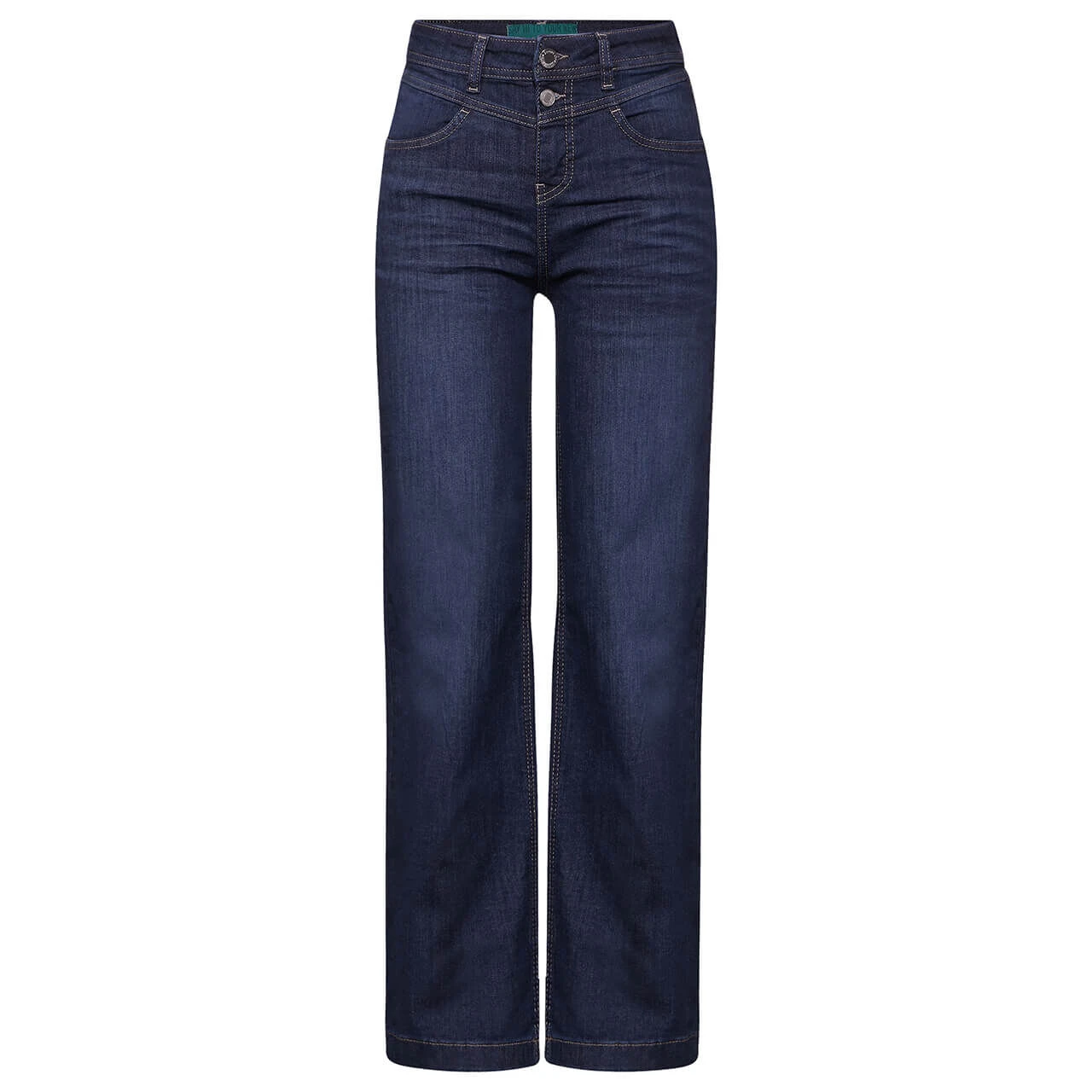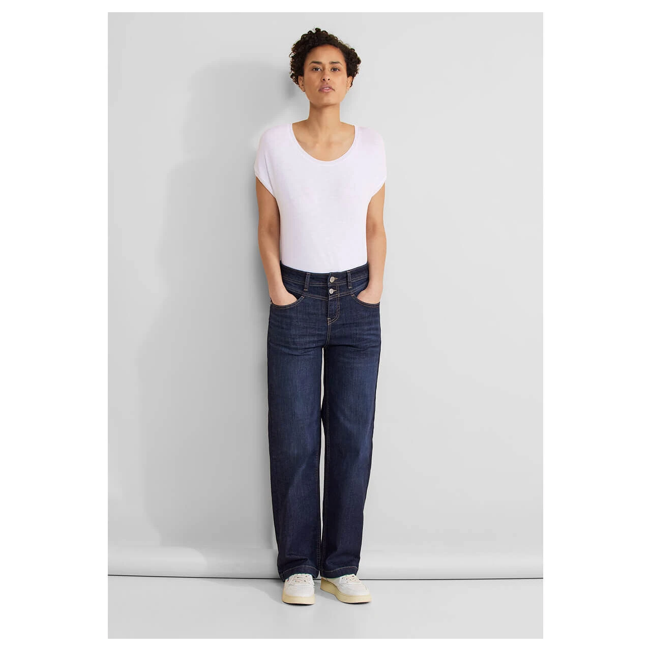 In love with jeans! Die Street One Jeans Wide setzt auf klassischen Denimstyle mit raffinierten Details. Zeitlos ist zum Beispiel das Dunkelblau und das schlichte 4-Pocket-Design. Darüber hinaus verleihen hellbraune Kontrastnähte, eine Doppelknopfleiste sowie ein weiter Schnitt dieser Damenjeans einen trendigen Touch.