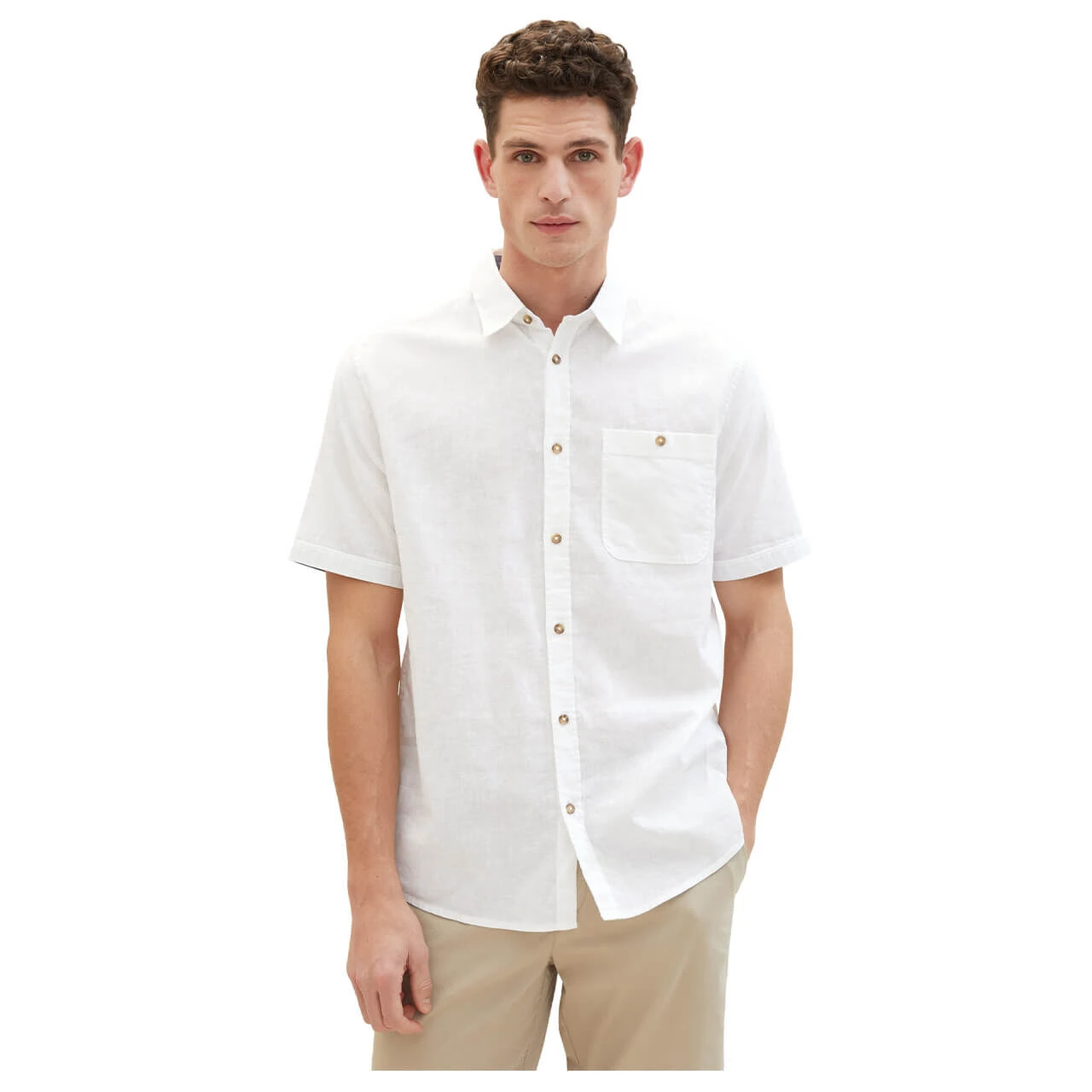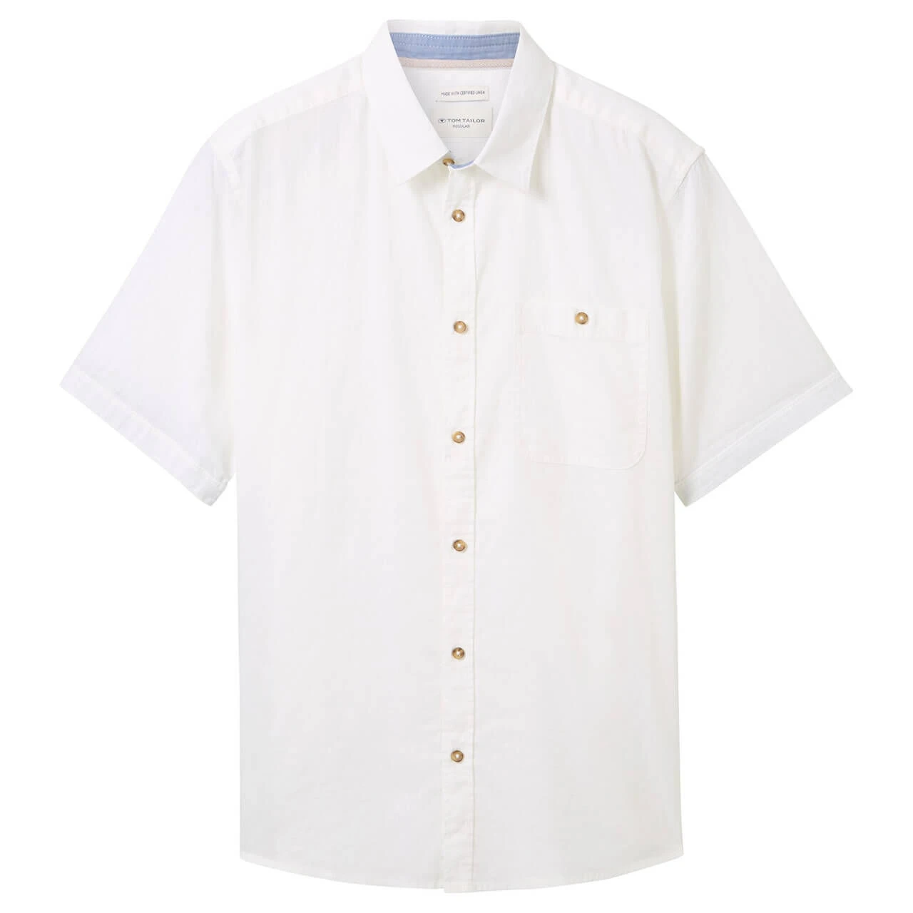 Mit dem Tom Tailor Herren Hemd kommen Sie nicht so leicht ins Schwitzen! Das Oberteil mit Knöpfen in Hornoptik enthält überwiegend Leinen, was sich feuchtigkeitsregulierend auswirkt. Für einen sportlichen Look können Sie die Ärmel des Hemds umkrempeln, damit eine blaue Borde zum Vorschein kommt.