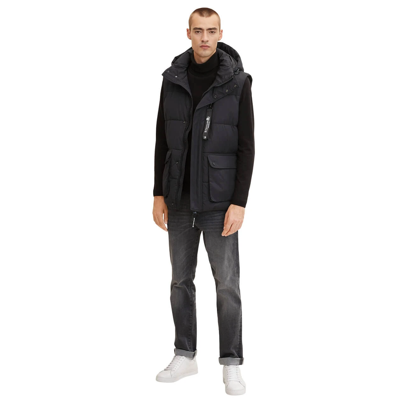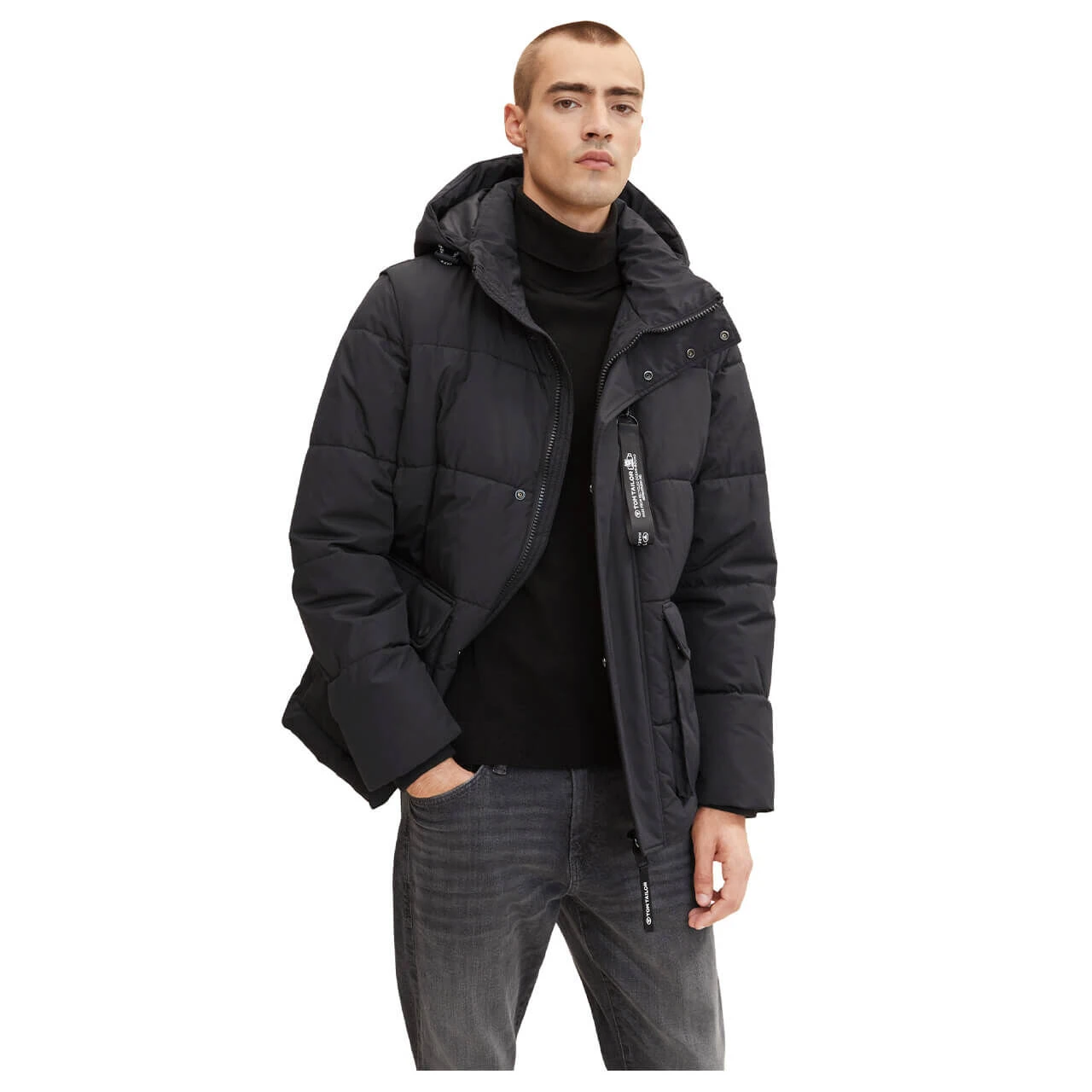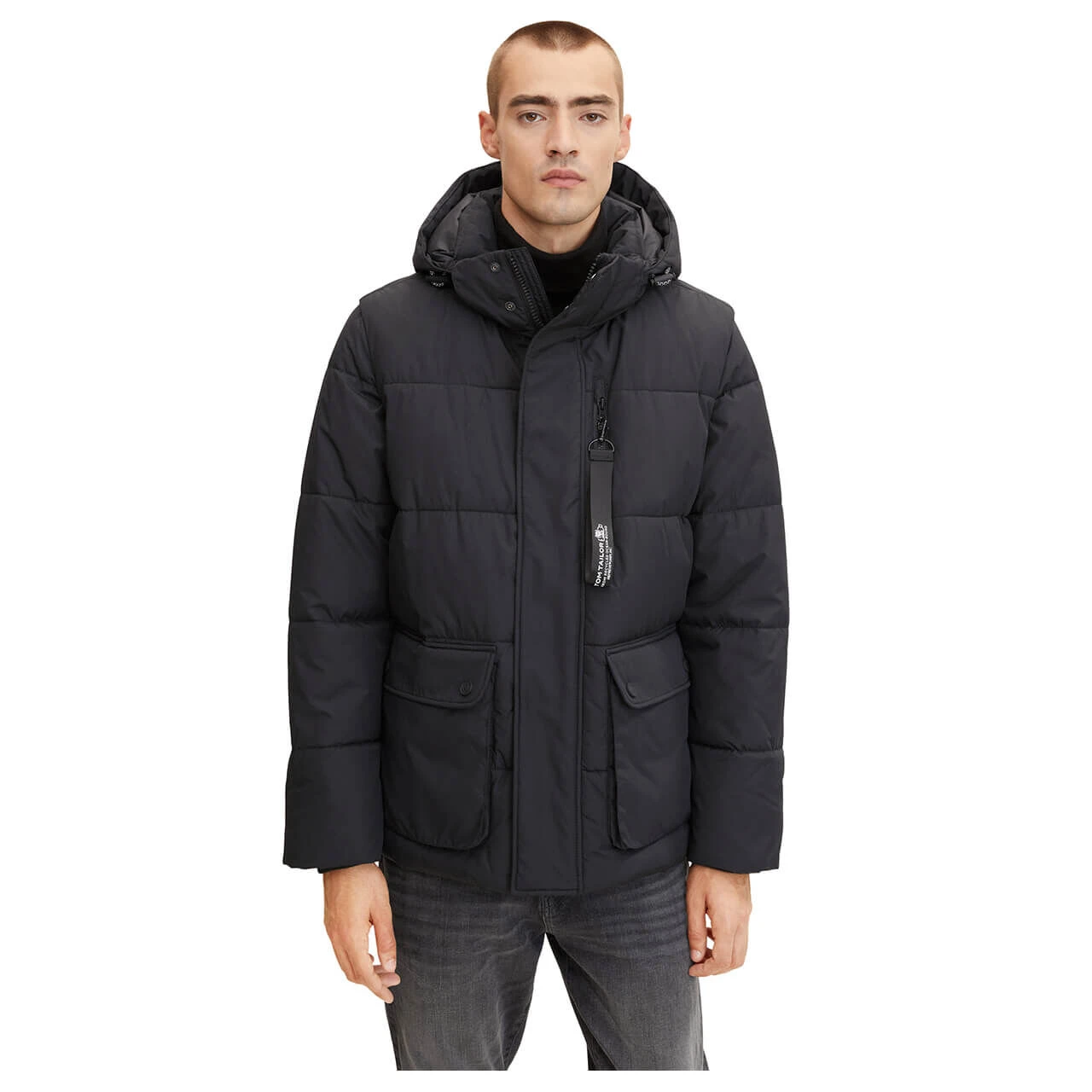 Praktischer geht es kaum: Bei der Tom Tailor Herrenjacke können Sie die Ärmel mit einem Reißverschluss abnehmen und sie so zur Weste umfunktionieren. Fünf Außentaschen, zwei davon mit Fleece ausgelegt, und Rippbündchen an den Ärmelenden erhöhen den Komfort bei der Winterjacke.