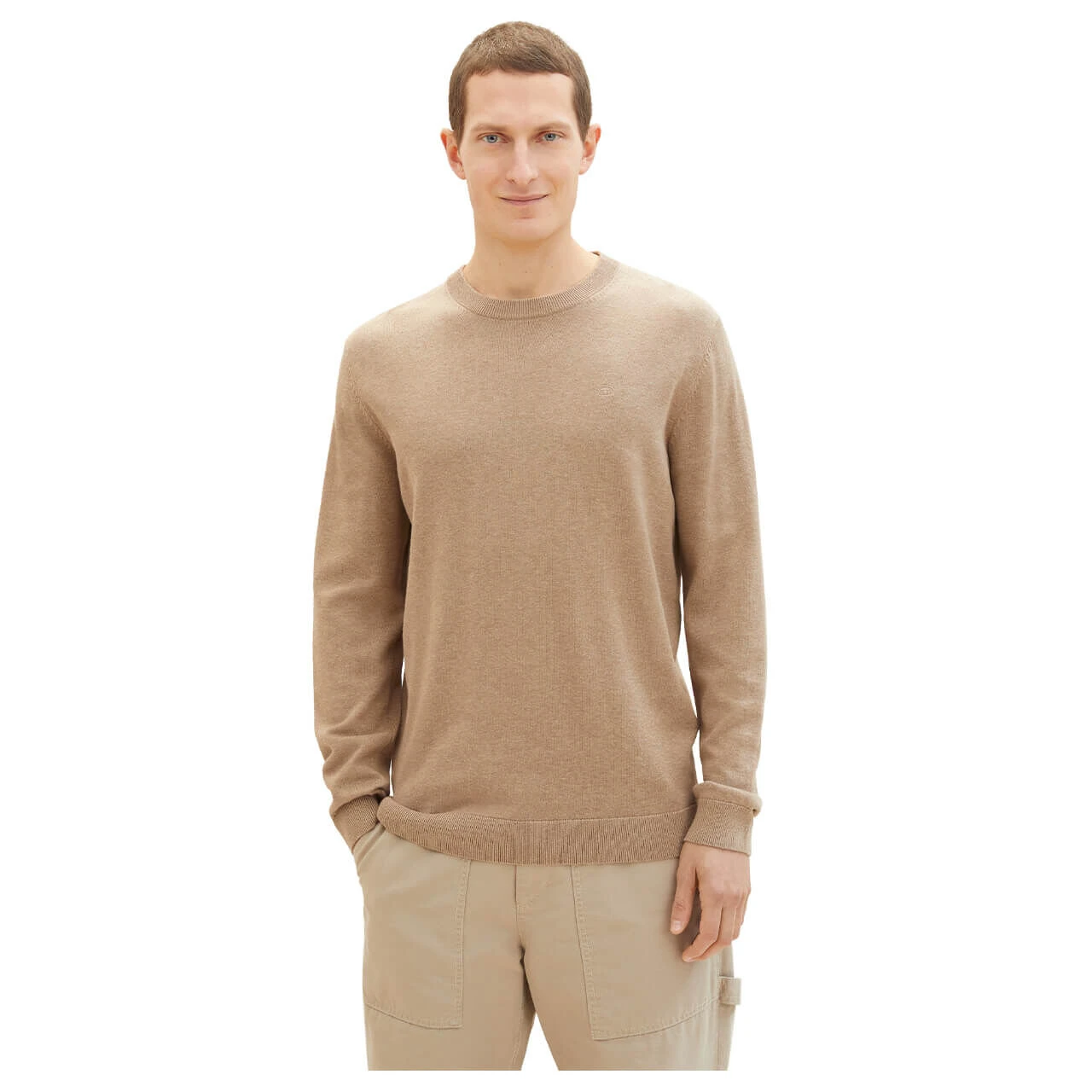Herren Pullover Basic Crewneck in Sandbraun