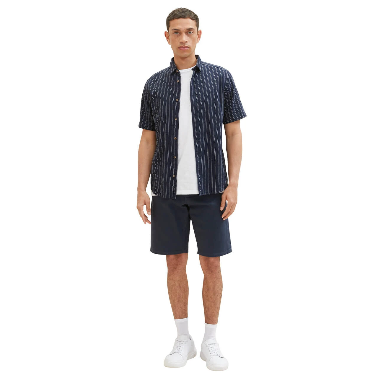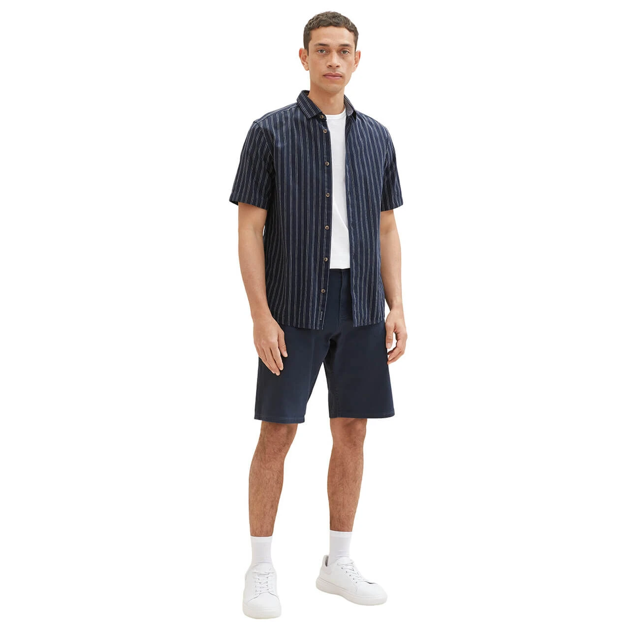 Ein softer Denim überzeugt auf der Tom Tailor Jeans Morris! Kombiniert mit silbernen Details zeigt sich die Bermuda schlicht und flexibel kombinierbar.
