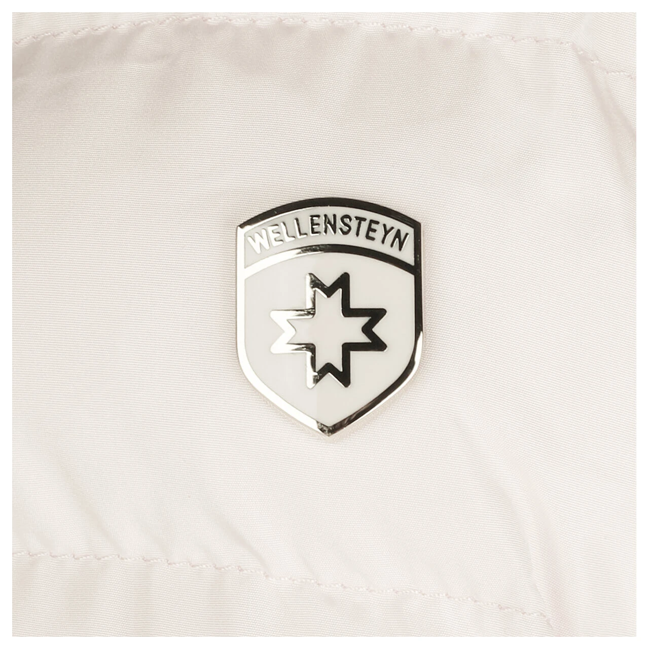 Goldene Details! Das cremige Weiß der Wellensteyn Italy Hood wird von goldenen Applikationen geziert – zum Beispiel an Druckknopf und Tunnelzug der abnehmbaren Kapuze, am Zipper des Verschlusses oder am Reißverschluss der beiden seitlichen Eingriffstaschen. Passend zum schmuckhaften Design und dem soften Farbton gibt sich das bequeme Material mit seiner federleichten Wattierung. Zudem verleiht das Steppmuster der atmungsaktiven und windabweisenden Übergangsjacke eine figurschmeichelnde und trendige Note.